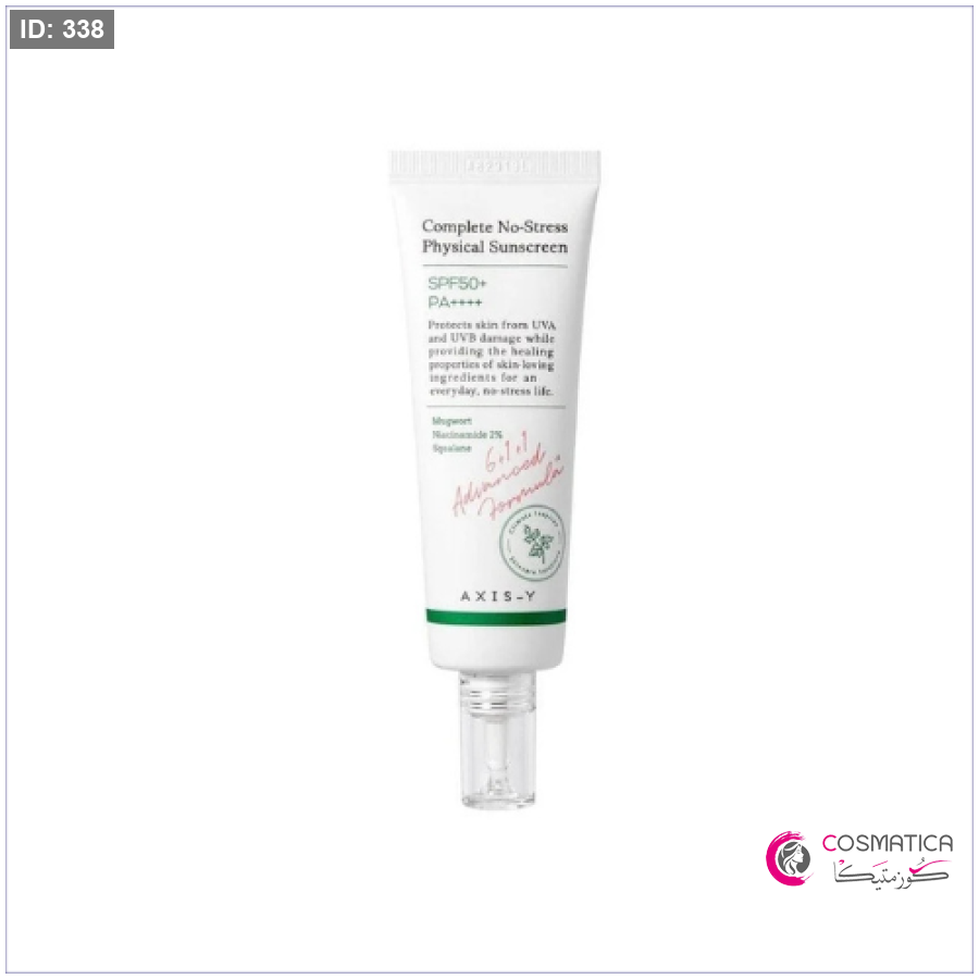 واقي الشمس axis-y complete no-stress physical sunscreen V3 بتركيبة معدنية فعالة يوفر حماية واسعة من الأشعة فوق البنفسجية UVA+UVB. يعمل واقي الشمس اكسيس واي على حماية البشرة من أضرار الشمس دون تهيجها، يناسب جميع انواع البشرة حتى البشرة الحساسة.